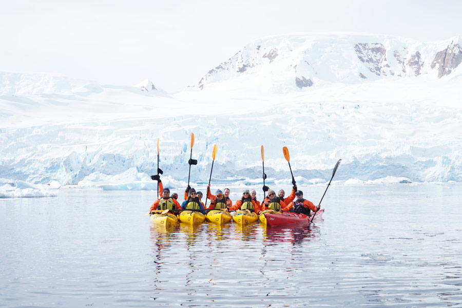 Experience the unforgettable thrill and serenity of kayaking in Antarctica as part of a small, expertly guided paddling group.