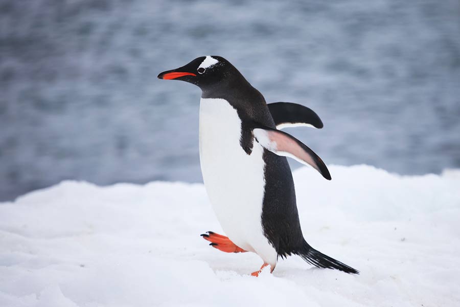 Spot penguins from your zodiac or hiking in Antarctica. Common species on the peninsula are the Gentoo, Chinstrap and Adelie penguins.