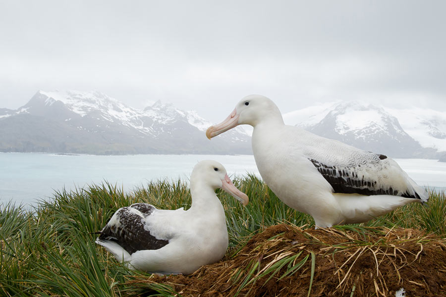 While at sea, we may become aware of our transit over the Antarctic Convergence, or Polar Front. This biological boundary marks where the South Atlantic meets the Southern Ocean, and we’ll notice the change as we cross it. Below the Convergence, the water is much colder; where it meets the warmer Atlantic, cloudy or foggy conditions often form. This mixing of currents creates an ideal foraging ground for a variety of birds and marine mammals. We’ll likely be accompanied by albatross, petrels, and shearwaters, and may spot whales—some species more often than others. Far from shore, we might see Antarctic fur seals. Seeing prions (part of the petrel family) and shags in greater numbers indicates we’re approaching South Georgia.