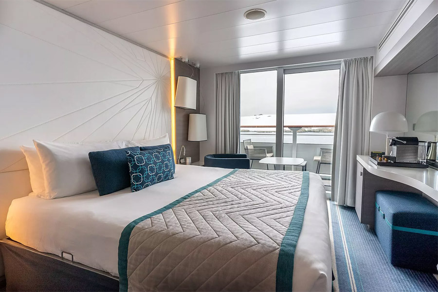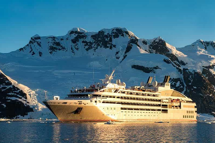 A sleek silhouette, a welcoming intimate atmosphere, discover aboard this modern ship the philosophy that has made this ship such a success: the spirit of Yacht Cruises. Sailing under the French flag, this magnificent yacht of only 122 staterooms and Suites, with balconies, was built in April 2015. You will be enchanted by the contemporary décor inspired by the destinations the vessel visits and the blue light of the Vega star in the Lyra constellation. The result is a subtle variation around a palette of blues, ranging from the luminous delicate grey-blue of the Polar ice to splashes of the vivid turquoise blue found in Mediterranean coves. A refined ambiance is enhanced by the quality of the workmanship and materials: white Corian counters in the lobby contrast with the warmth of leather to recall a boat’s hull, while the central sculpture of enameled pieces takes its inspiration from the sea. In the lounge bar, the carpet picks up a tennis stripe theme symbolising a certain idea of cruising, one synonymous with French elegance and a chic seaside spirit. The ship is well equipped for the polar regions and mixes luxury and creature comforts with the thrill of expedition. In Antarctica it will sail with a maximum of 200 guests. Your voyage includes room service and an in cabin minibar as well as an onboard afternoon tea daily and most beverages. You can relax onboard with a spa, gym, library and pool. In the evening enjoy a mix of traditional entertainment and lectures from your naturalist guides.