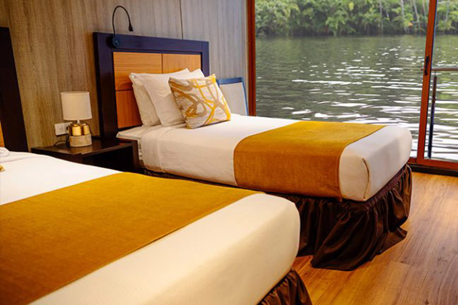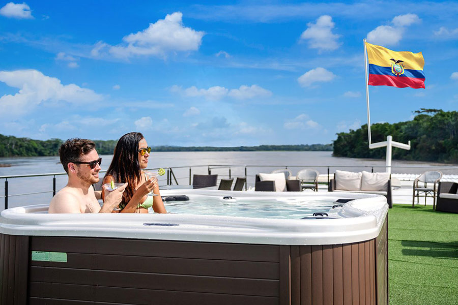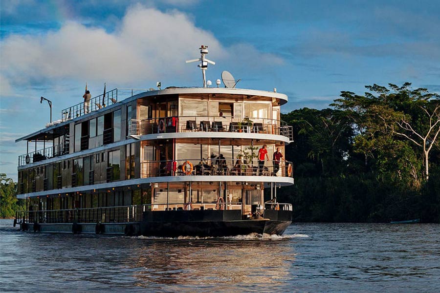 Onboard you can enjoy wine and fine dining, along with excursions into the amazon on skiff boats and onto the shores with the expert expedition crew. The18 suites onboard are equipped with air conditioning and 24-hour electricity, private bathroom with hot water and all necessary amenities. In addition, there are wall-to-wall panoramic windows allowing you to watch the world float by, as you cruise along this majestic river. The observation deck with outdoor Jacuzzi and al fresco lounge are ideal places to have a cocktail, relax or simply enjoy the spectacular views.