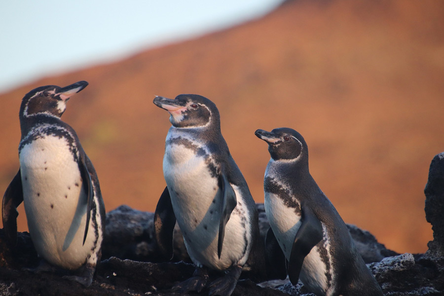 This morning you will head to Bartholomew Island, where the famous Pinnacle Rock is found. Bartholomew consists of an inactive volcano with a variety of red, orange, black and even green volcanic formations. We will take a trail of stairs to the summit of the volcano (about 30 or 40 minutes) where you will enjoy one of the best views of the islands! You will also visit a small, beautiful beach surrounded by the only vegetation found on this barren island. The beach is perfect for snorkelling where you may even see and swim with Galapagos penguins. Following this, you will be on your way to Chinese Hat Islet. This small islet is located near the southeast coast of Santiago Island. Its name comes from the distinct shape of the islet’s summit. This is a great location to view many geological formations such as lava tunnels and lava flows. Some of the lava flows were formed underwater and subsequently raised above sea level.