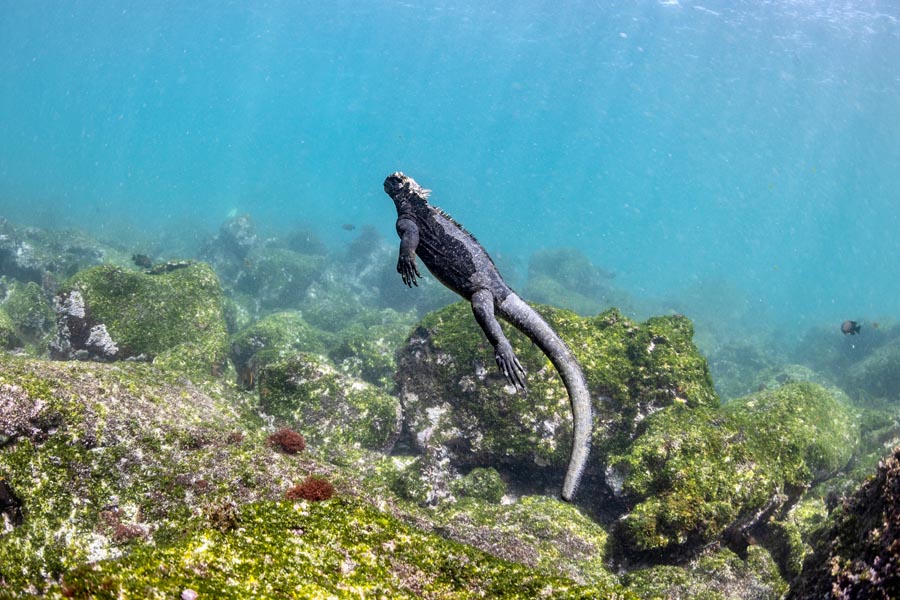 Located at the base of an imposing volcano (the most active in the Galapagos islands) Espinoza point is one of the jewels of the Galapagos National Park. As soon as you disembark you will be surrounded by hundreds of marine iguanas, as this is the largest colony for the species. Sea lions bask in the beaches while their pups play in tide pools. Along the shore you will see flightless cormorants, which are restricted to the western areas of the archipelago. Surrounded by cold plankton-rich waters, Punta Espinosa is home for an array of species, including herons, pelicans, oystercatchers, sea turtles, shorebird and many more. Look up in the mangroves as Galapagos hawks often perch to look for their prey.