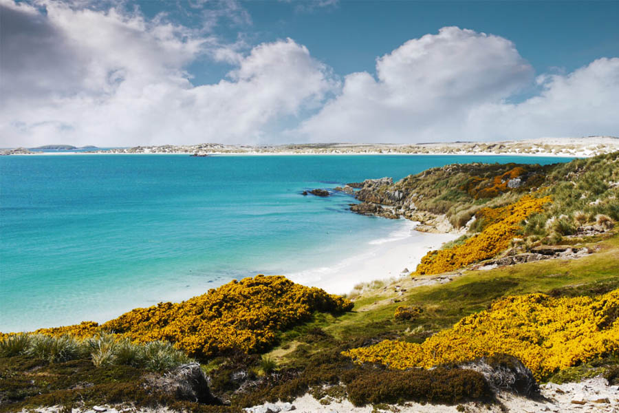 The Falklands (also known as Malvinas) comprises two large islands (East and West Falkland), with over 700 islands scattered off the coast. All but seven of these are uninhabited, with windswept coastlines, white sand beaches and crystal-clear water. These beautifully barren islands are true wildlife havens, sheltering an impressive diversity of birdlife, including the largest black-browed albatross colony on earth. The cold, nutrient-rich waters surrounding the islands make this a prime location for spotting marine life.