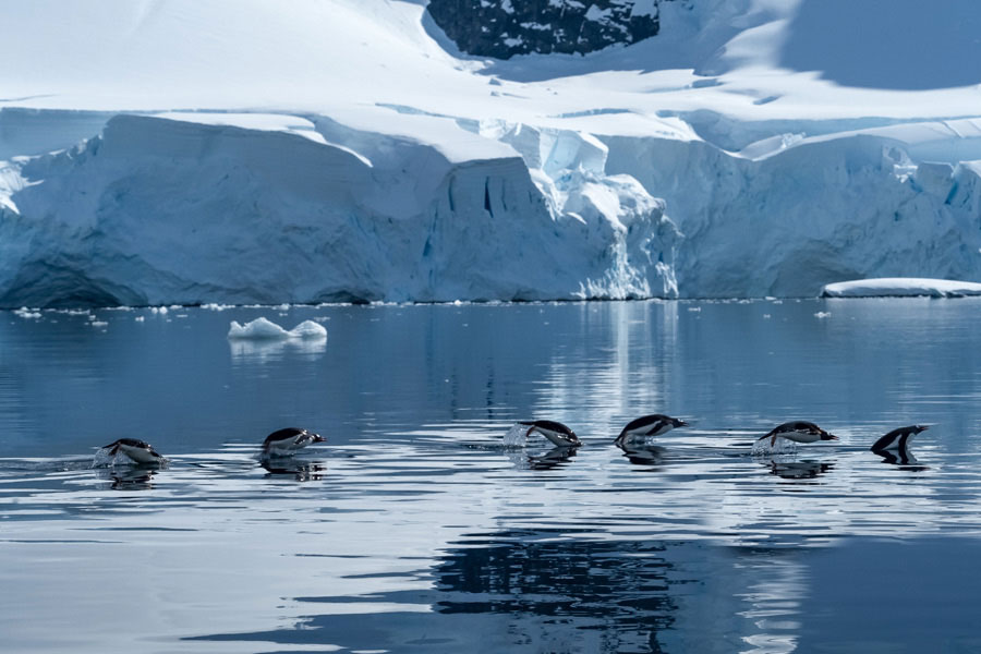 Keep a close watch for the tail fluke of whales as they take a deep dive, see porpoising penguins and ice seals such as Weddell and crabeater seals hauled out on ice floes.