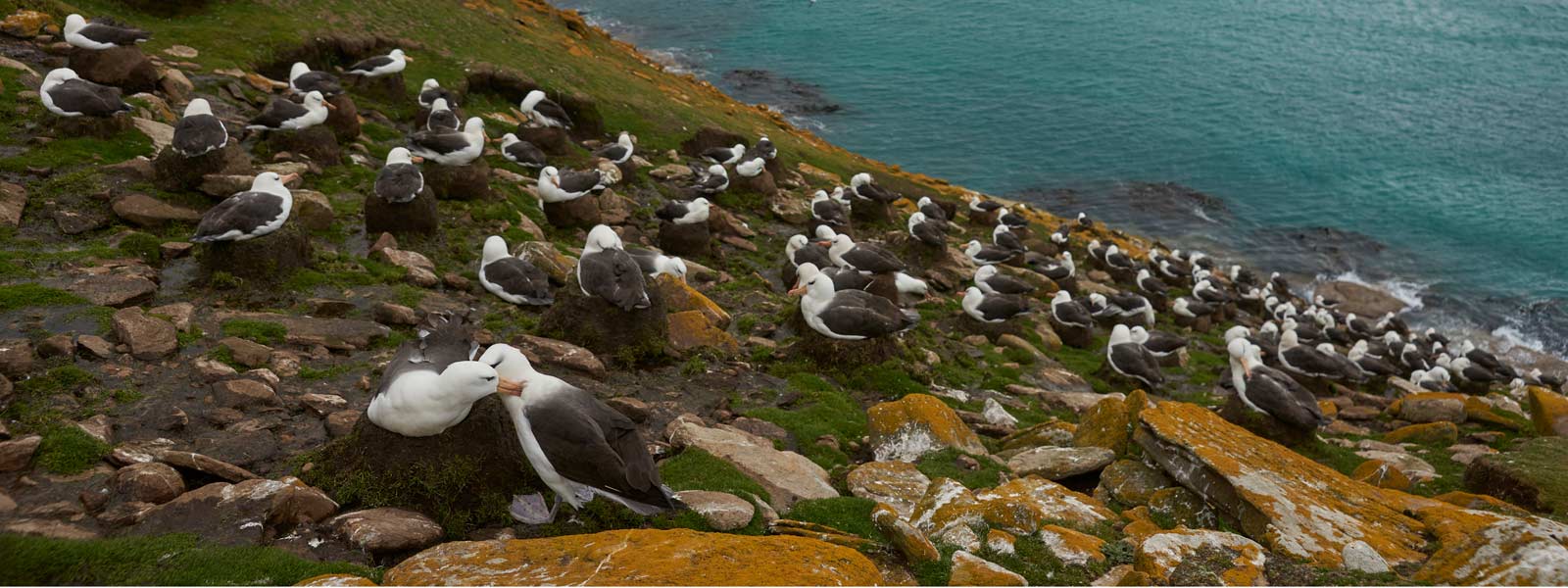 The Falklands~Malvinas comprises two large islands (East and West Falkland), with over 700 islands scattered off the coast. All but seven of these are uninhabited, with windswept coastlines, white sand beaches and crystal-clear water. These beautifully barren islands are true wildlife havens, sheltering an impressive diversity of birdlife, including the largest black-browed albatross colony on earth. The cold, nutrient-rich waters surrounding the islands make this a prime location for spotting marine life.