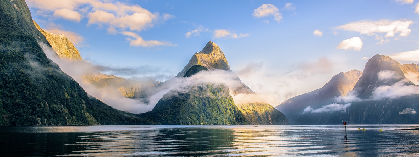 Milford Sound fiord is among one of the most beautiful natural sites in New Zealand. So much beauty will quite simply take your breath away. Located on the south-west coast of South Island, in the Fiorldland National Park, this sumptuous inlet carved out by glaciers advances over at least 15 kilometres inland, in the Southern Alps. Majestic cliffs seem to surge out of the dark waters, rising several hundred metres high: an abrupt relief from where impressive waterfalls cascade.