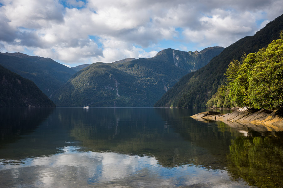 Referred to as the "Sound of Silence", there is a secluded serenity that surrounds Doubtful Sound in contrast with the better-known Milford Sound. Both are part of the Fiordland National Park, a UNESCO World Heritage Site. Lieutenant James Cook named 'Doubtful Harbour' in 1770 as he was uncertain if it was navigable under sail. Doubtful Sound is the deepest of the fiords with a maximum depth of 421 m. It contains three distinct 'arms' and several outstanding waterfalls in the area from Deep Cove to the open ocean. Your ship will spend time navigating around Secretary Island through both Thompson and Doubtful Sounds. You will enjoy the spectacular scenery from the outer decks.