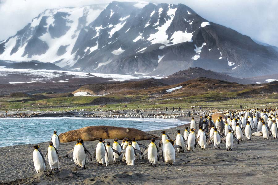 You’ll spend several days retracing some of Shackleton’s steps and visiting his grave at the ex-whaling station of Grytviken, located on the east side. Wander among hundreds of thousands of king penguins in the dramatic South Georgian light, visit old whaling stations and enjoy educational presentations on the then and now of the area. Across the island, you’ll see dark volcanic beaches backgrounded by hanging glaciers and have the chance to go on day hikes among alpine lakes.