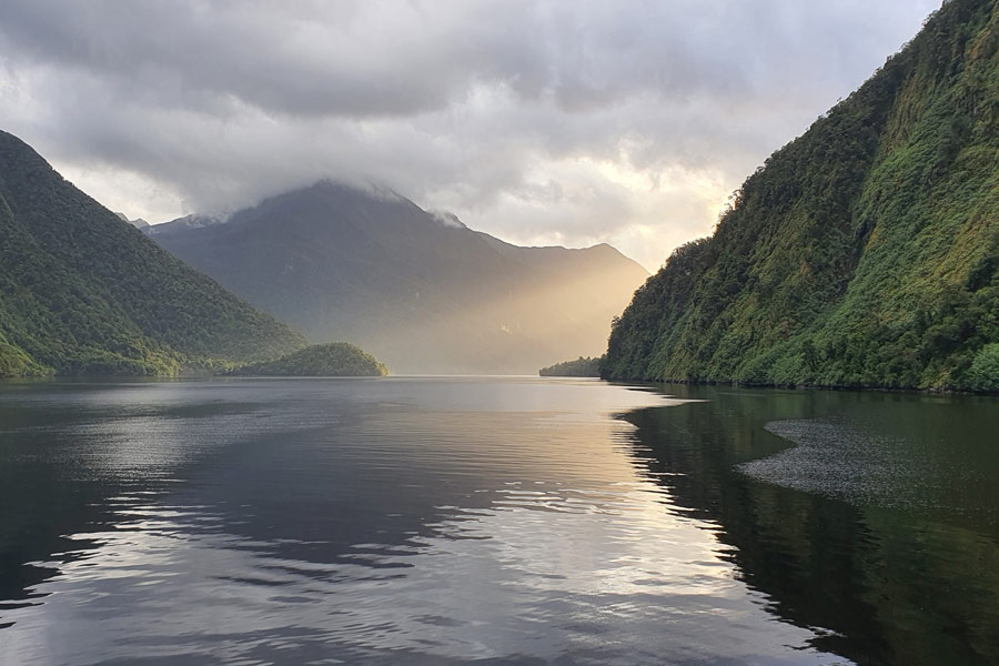 We have three days to explore the incredible wilderness of fiords in the south-west corner of the South Island. This is an area rich in history, majestic scenery and abundant in wildlife. Fiordland was well known to local Maori people, with the demi-god Tu-teraki-whanoa being said to have used his adze, Te Hamo, to carve out the region’s fiords. Captain Cook and his crew landed here on HMS Resolution in 1773, they were the first Europeans to visit Fiordland, subsequently spending five weeks in Dusky Sound. Cook’s records of his discovery and maps attracted sealers and whalers not long after who then formed the first European settlements of New Zealand, historically this region is very important and shaped the future of the country. Fiordland’s coast is only accessible by sea, making it the most remote region of New Zealand’s mainland. Waterfalls, streams, rivers and fiords are enveloped with misty veils that come and go, revealing steep gradients of mountain peaks and sheltered valleys. A rugged terrain, the thickly forested floors are covered with ferns, lichens and mosses. Bottlenose Dolphins, Fiordland Crested Penguins and Little Penguins are all residents of the fiords; during our time here we will look out for them. Our schedule gives us the flexibility to visit as much as possible, areas we plan to visit during our time in Fiordland include Doubtful Sound, Dusky Sound and Acheron Passage, Astronomer’s Point and Pickersgill Harbour. During our time in Dusky Sound there will be the opportunity to experience an unforgettable helicopter flight through the Sound swooping down alongside Cooper Island and Cook Channel with a landing on Mt Pender where spectacular vistas across constellations of islands stretching into the horizon and dotting the winding fiords can be enjoyed. Our final plan will be determined by the weather. The Captain and Expedition Leader will work hard to make the best use of our time in this incredible region of New Zealand, including areas that even few New Zealanders have visited. The isolation of Fiordland has been beneficial because its beauty remains unspoiled and its historic sites undisturbed. On the evening of Day 5 we will enjoy a celebratory dinner with newfound friends and reflect on a wealth of new experiences from our adventure.