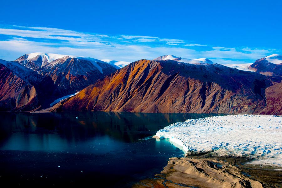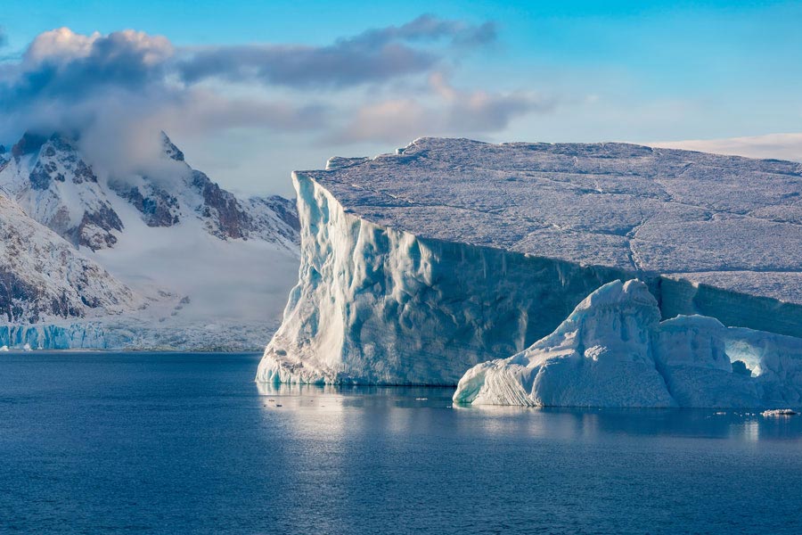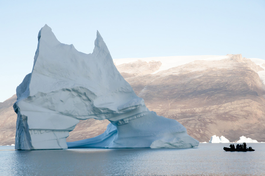 Scoresby Sund is one of the longest and most visually stunning fjord systems in the world. Almost totally devoid of human habitation, it is also one of the most pristine natural environments on Earth. In this epic wilderness, the forces of nature have shaped a landscape of incomparable grandeur. Deep fjords and narrow passages are framed by sheer rock walls up to 2,000 meters high. Colossal icebergs—calved by immense glaciers and sculpted by wind and water into fantastic shapes—drift throughout the intricate fjord system in striking contrast to sparkling blue waters and polychromatic mountains capped with fresh snow. From verdant coastal plains to ice-clad peaks all the way to the glaciated heart of Greenland, a trip through Scoresby Sund sets a new standard for “scenic”.