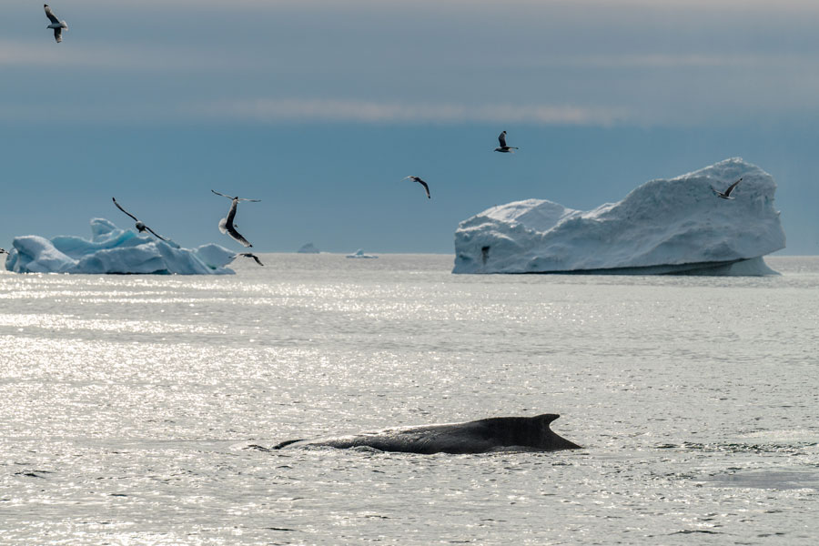 As we sail north across the Denmark Strait to East Greenland, we celebrate our crossing of the Arctic Circle. We keep a continuous lookout for great whales and flocks of seabirds feeding in the productive waters near the sharp rise of Greenland’s continental shelf. After nightfall, we have our first of many opportunities to see the aurora borealis overhead.