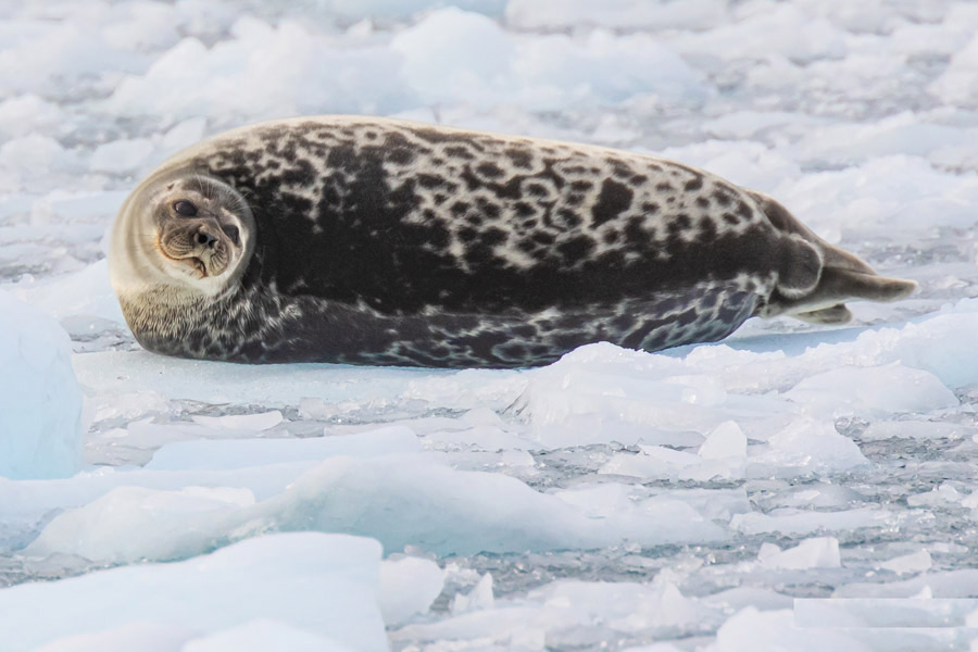 The grand fjords of Hornsund offer spectacular glaciers and a breathtaking landscape of towering mountain peaks, often reaching above the clouds. On a clear day you can see the summit of the highest mountain, Hornsundtind, at 1431 meters. Hornsund is a favourite haunt of some of Svalbard’s polar bears and bearded seals can often be seen resting on the fjord ice.