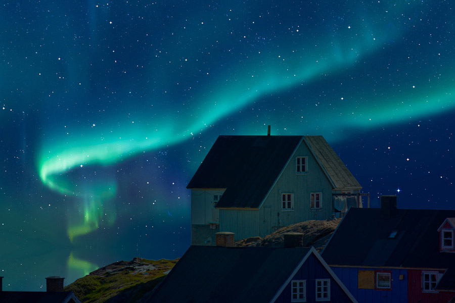 In September, at the equinox, day and night are given equal opportunities to astound you. As night falls, the darkening sky becomes a stage for nature’s greatest celestial performance: the Northern Lights. East Greenland is one of the very best places in the Arctic to view this otherworldly natural phenomenon. In addition to being at the perfect latitude for strong aurora displays, the skies above Scoresby Sund are often cleared by katabatic winds rolling down from the nearby Greenland Ice Sheet. Lights dancing from horizon to horizon are mirrored in calm waters while the silhouettes of gigantic icebergs and serrated mountains add to the romantic splendor of the experience.