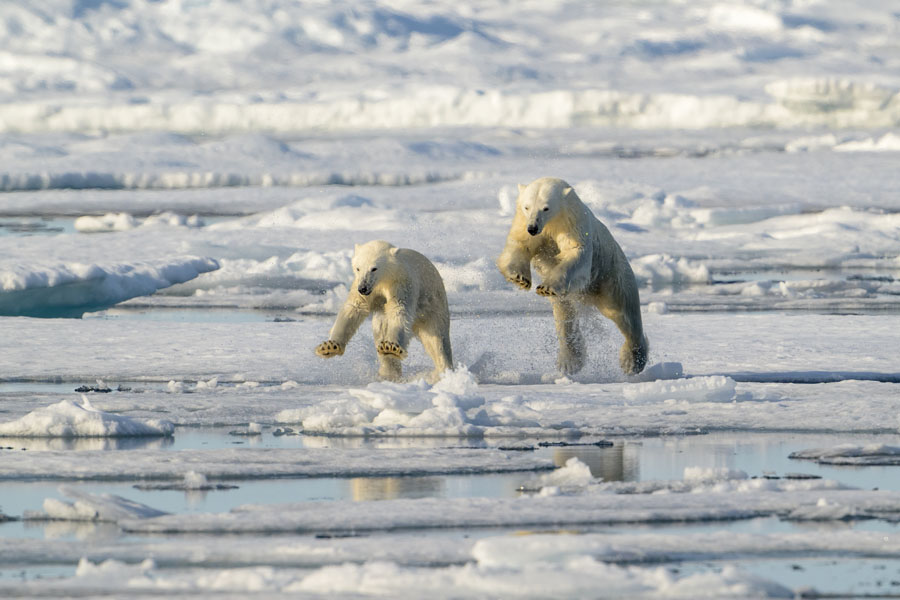 Phenomenal fjords, magnificent mountains ranges, and a polar desert rich in fossils, set the stage for heroic tales of early exploration. See walrus hauled-out on sea ice or on beaches. On land, we stretch our legs on walks across tundra carpeted in brightly coloured wildflowers. We visit towering cliffs noisy with nesting guillemots and puffins, and scree slopes that hold Svalbard’s largest little auk colonies. Most memorable will be encounters with the majestic polar bear on pack ice. Your Expedition Team is just as keen as you are to find them – they will be on constant watch to spot these inspiring creatures.