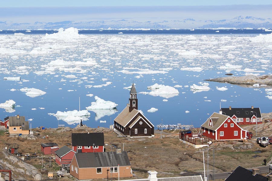 Greenland’s second largest town, Sisimiut is located approximately 54 kilometres (33.5 miles) north of the Arctic Circle, meaning that during summer, you can experience the midnight sun here. The town is famous for the old blue church with the gate made of whale bone. In the cosy museum next door to the church, you will find an excellent reconstruction of an Inuit turf house as well as exhibits of local history and early life in Greenland.