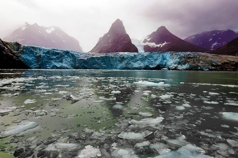 Ilulissat, located in Disko Bay, is home to the UNESCO World Heritage Site of Ilulissat Icefjord, which serves as the thoroughfare for countless icebergs calved from the world’s fastest-moving glacier, Sermeq Kujalleq. A small boardwalk leads to an elevated overlook, where you can view bergs of all sizes spread out before you. The overlook, a rocky outcropping, gives the feeling of standing at the edge of town and the beginning of a vast wilderness. Looking out over the ice evokes a humbling sense of scale. As you explore, notice the Arctic cotton grass and summer wildflowers thriving in theslong daylight hours. The inner harbor often holds evidence of the icefjord’s reach, with drifting icebergs mingling among fishing boats and skiffs. The town itself is well worth exploring, and has become one of Greenland’s top destinations. Recent years have brought growth— colorful homes now sit beside new restaurants, boutique hotels and small businesses. History buffs will be excited to know Ilulissat is the birthplace of Arctic explorer Knud Rasmussen, who traveled by dog sled from Greenland to Alaska (and briefly Siberia) during the Fifth Thule Expedition (1921–1924). Fluent in Kalaallisut, he moved slowly, learning from and documenting the Circumpolar Inuit he met—considered one of the Arctic’s greatest expeditions. The dramatic landscapes around Ilulissat inspired Rasmussen’s life of exploration. And as we approach town, watch out for whales, which occasionally frequent the iceberg-laden waters.