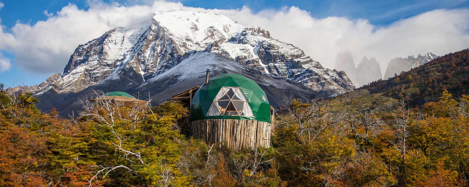 Let yourself experience the first one of its kind in the world - EcoCamp Lodge. Located in the heart of Torres del Paine National Park, EcoCamp perfectly fits its pristine surroundings. Modelled on the ancient shelters of the region’s Kaweskar people, the dome styled accommodation is made from renewable materials and offers big panoramic windows to catch as much daylight and reduce electricity usage. The camp is also powered by solar panels and battery banks help to reduce the negative tourism footprint in Patagonia and preserve its pristine and uniqueness. While still considering nature, you can enjoy cozy and spacious domes, socialize during yoga classes or in community domes with other visitors. In order to cherish the surrounding nature, activities like multi-sport adventures, wildlife watching and a variety of hiking and walking trails are provided for your comfort. Eco Camp has many itineraries to choose from, including 7 day W Trek