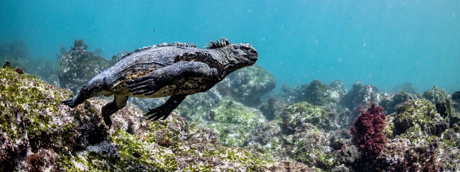 Throughout the island, you'll encounter several hybrid iguanas resulting from the crossbreeding of male marine iguanas and female land iguanas. These hybrids are easily identifiable by their distinctive black/gray color, featuring the crest of a land iguana and the face and tail reminiscent of a marine iguana. The thriving population of iguanas owes much to the abundance of tunas, their preferred food source. As you explore, keep an eye out for swallow-tailed gulls nesting on the rugged cliffs, as well as other seabirds like Audubon shearwaters, red-billed tropicbirds, frigatebirds, and brown pelicans.